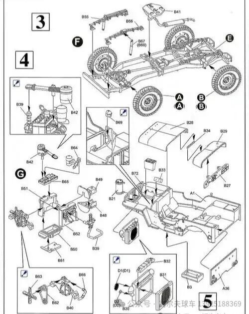 The exploded view is divided into areas by functional modules (such as chassis area, power area, suspension area). The numbered sections in the diagram (such as 3, 4, 5) correspond to different modules. First, determine which module the part you are looking for belongs to, to narrow down the search range.